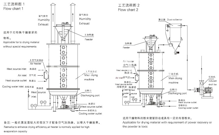 ◎物料的流向單一、無返混現象,干燥均勻、質量穩定、不需要再混合。